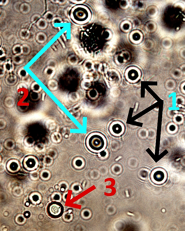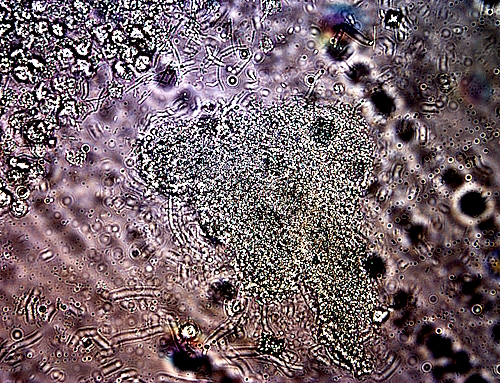These phenomenon are commonly recorded over the years and do not have special bearing to the electromagnetic culturing method. A couple of representative photos are provided for reference, and the topics have been discussed in some detail prior. These photos can be associated with both urine samples, the VLF sample and the control sample subject only to ambient electromagnetic fields.